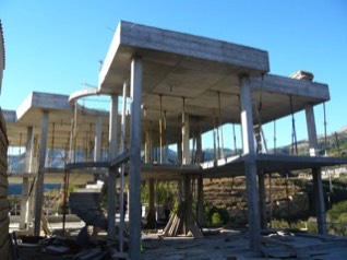 Building StructureThe house is supported by a reinforced concrete framework that was infilled with aerated concrete blocks (Ytong). The ceilings are solid reinforced concrete slabs. The roof is an overhanging flat roof, from which a stair tower protrudes.