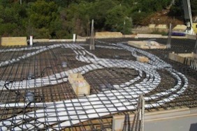 For cooler winter days or for times with many cloudy days, the house is equipped with central heating that is independent of the ventilation: a 1,000-liter hot water tank supplies not only hot drinking water, but also supplies an underfloor heating system that explicitly heats the bathroom floors as well as the main floor surfaces of the common rooms on the ground floor and in the basement (see floor heating plan).