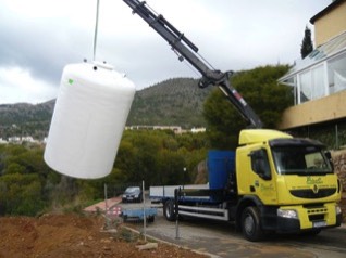 Rainwater TankOn the flat roof, the house has around 190m2 of roof surface area to collect accumulating rainwater. In addition, a surface area of 110m2 from the south- and east-facing terraces is also connected to the rainwater system. In this region, rain falls mainly during the winter months, while it hardly rains at all during the summer months. For this reason, a relatively large storage volume of 16m3 was selected for the rainwater tank, which is buried underground in the garden. This allows for collected rainwater to supply the majority of the garden irrigation during winter as well as the water for toilet flushing. This water tank is saving about 80m3 of fresh water every year.