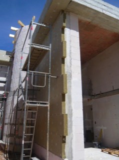On all exposed exterior walls, a 12cm thick thermal insulation composite system made of mineral wool was applied.